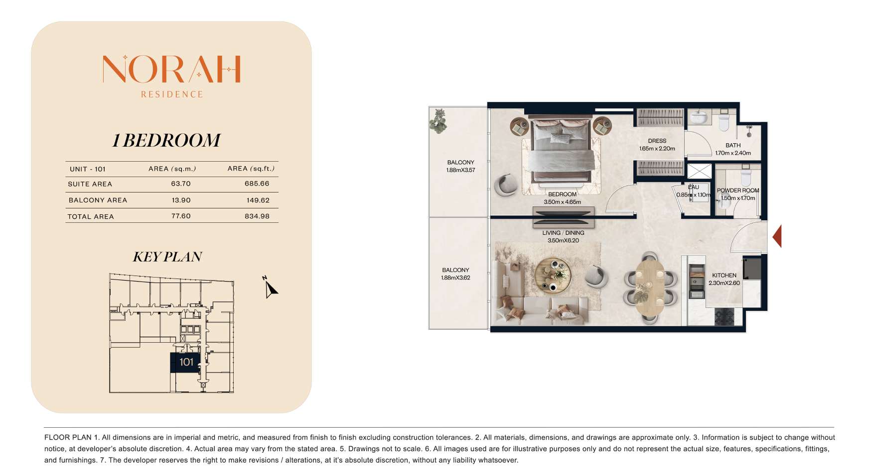 Norah Residence at Jumeirah Village Circle (JVC) is an elegant mid-rise residential development featuring Studios, 1, & 2 bedroom Apartments and 3 & 4 bedroom Duplex Apartments designed for modern, connected living. Crafted by award-winning NAGA Architects, this 12-storey façade exemplifies contemporary comfort and functionality, offering 183 smart residences with Bosch-fitted kitchens, smart home automation, and premium finishes.