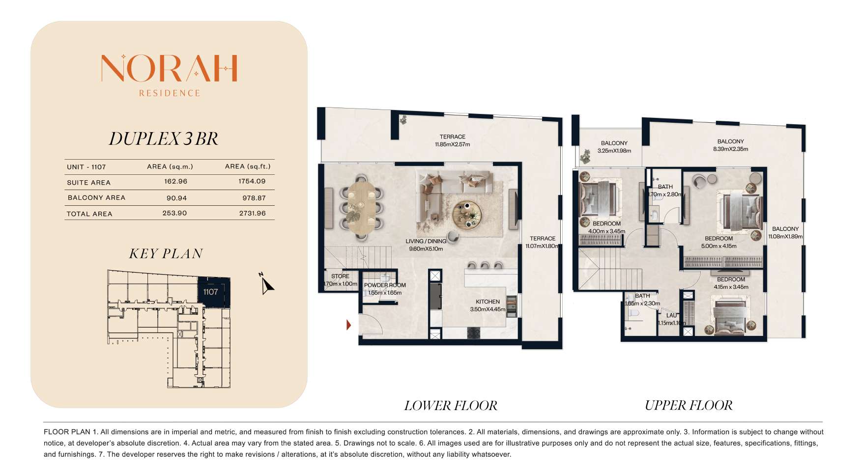 Floor Plan 3 Bedroom Unit - 1107 2,731.96 Sqft Duplex Apartment