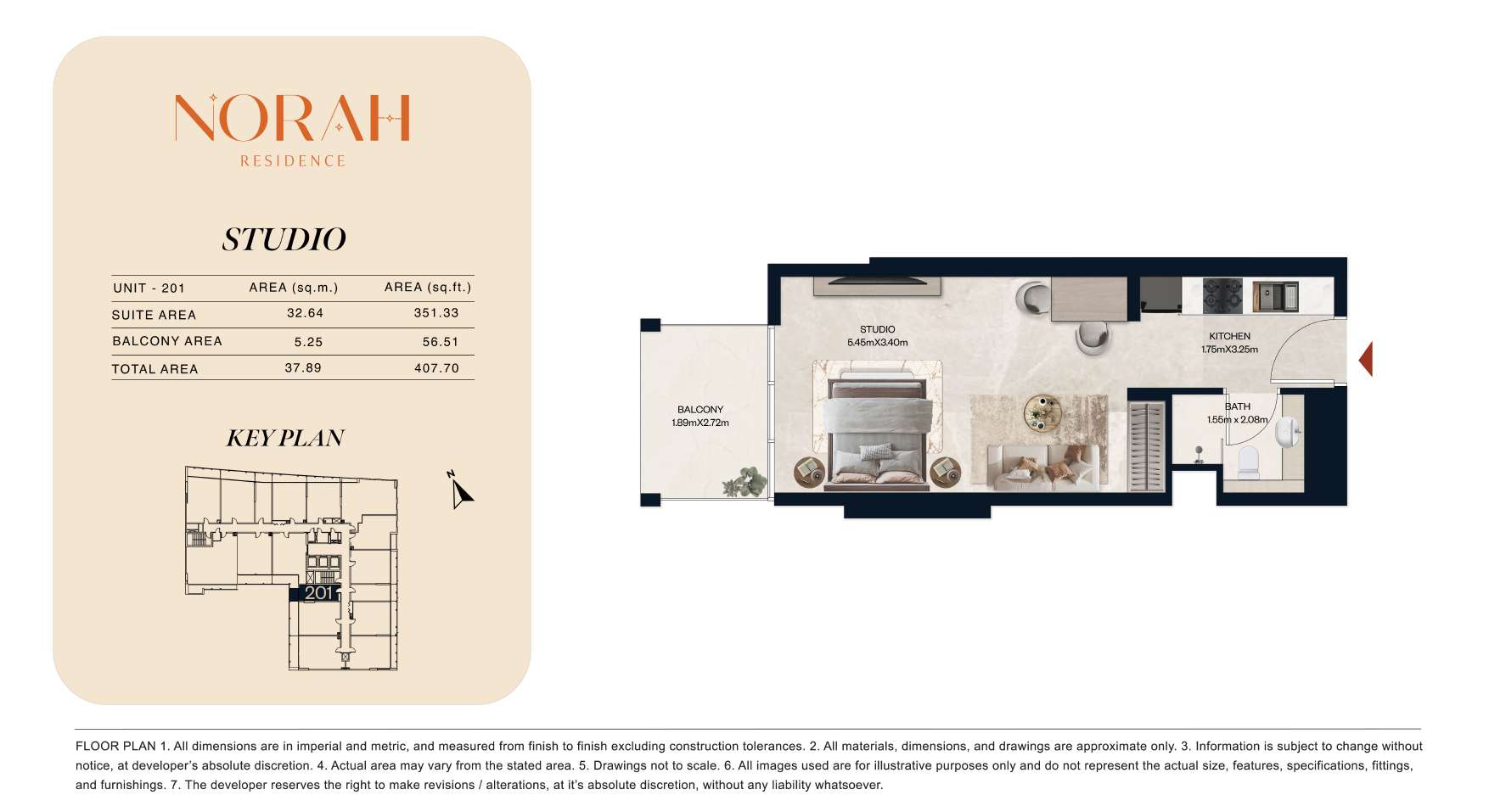 Floor Plan Studio Unit - 201 407.70 Sqft Apartment