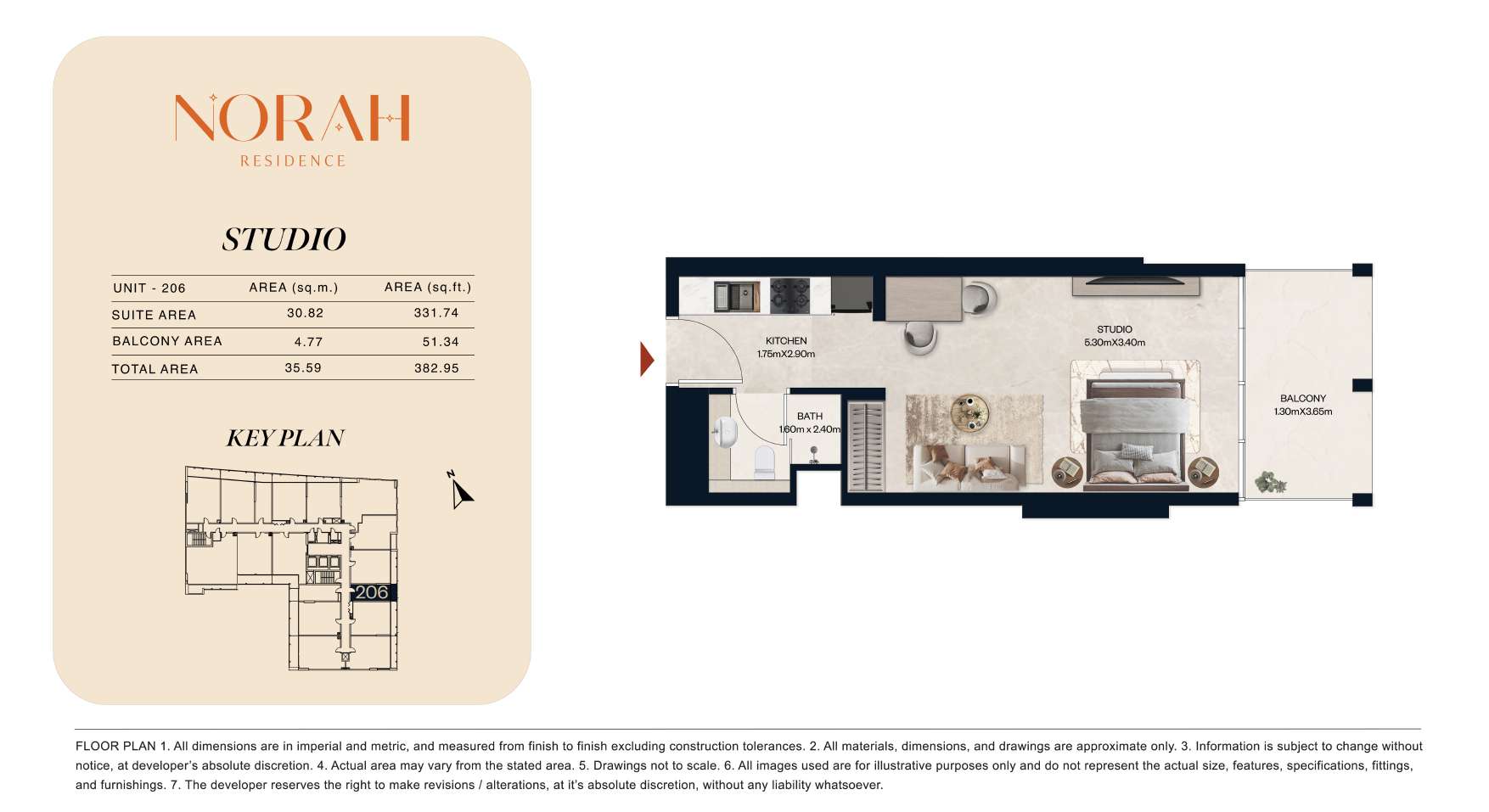 Floor Plan Studio Unit - 206 382.95 Sqft Apartment