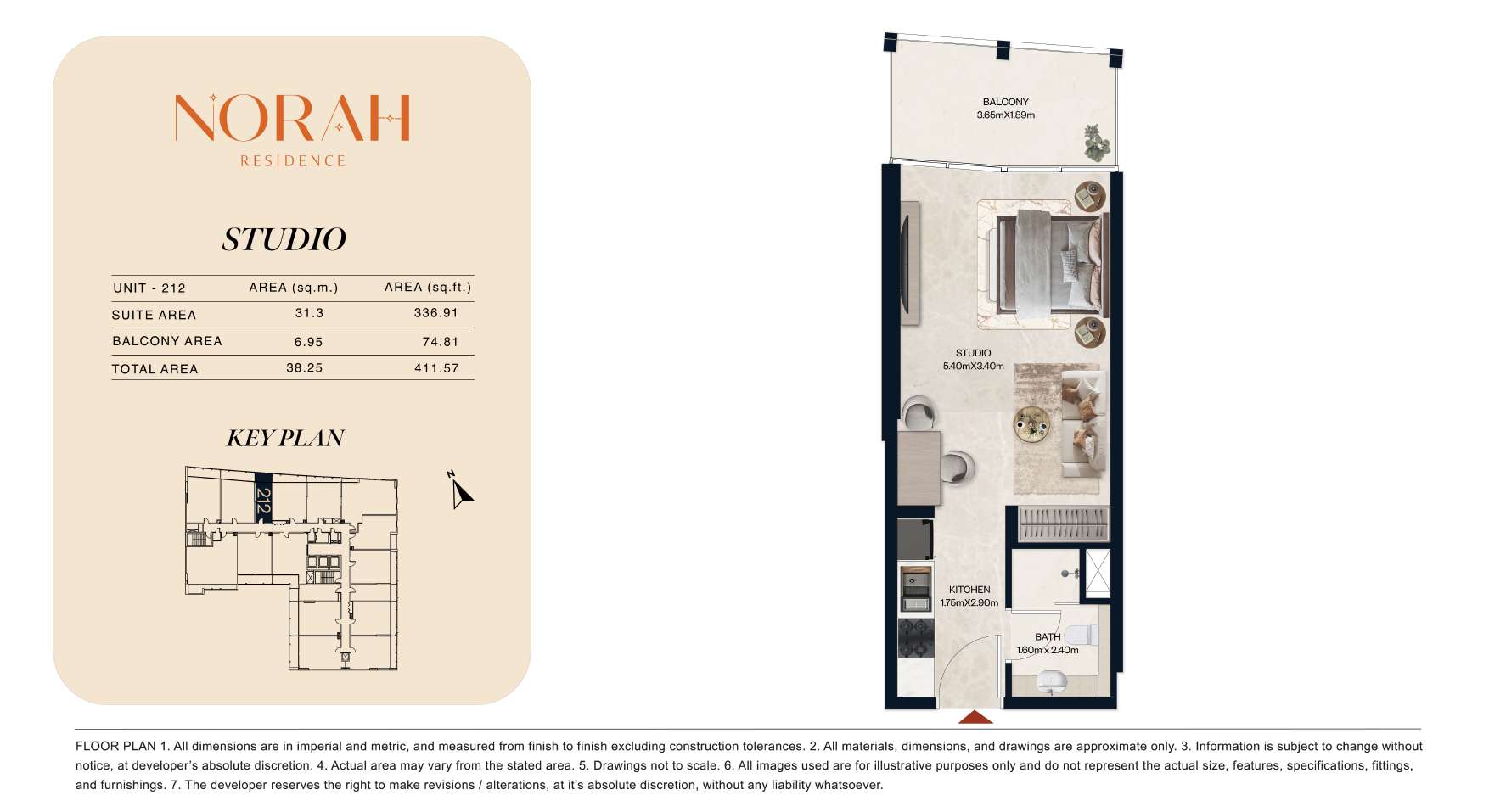 Set in a prime location within JVC, Norah Residence provides effortless access to Sheikh Mohammed Bin Zayed Road, Al Khail Road, and Hessa Street, ensuring seamless connectivity to the rest of Dubai. Residents enjoy resort-style amenities including a rooftop pool, fitness centre, yoga and wellness decks, open-air cinema, BBQ zones, and retail spaces. With views overlooking Halfa Park, the pool, or the iconic FIVE Jumeirah Village Hotel, the project blends city convenience with serene surroundings, making it an excellent choice for families, professionals, and investors alike.