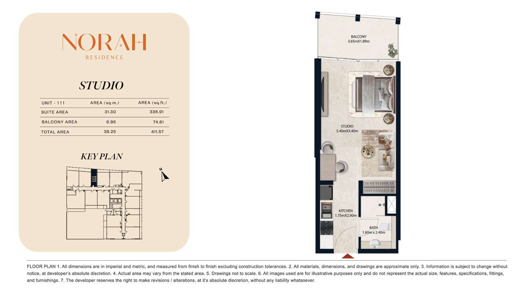 Floor Plan Studio Unit - 111 411.57 Sqft Apartment